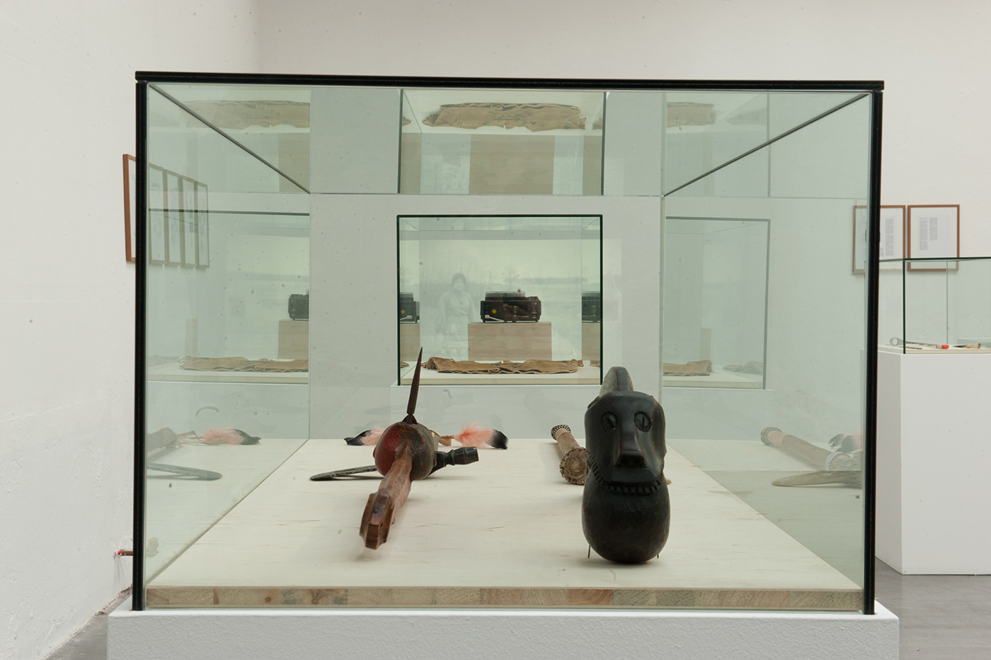 German Indian is a mixed-media installation dealing with authorship, originality, exotism and authenticity using methods of appropriation. Redrawings, rephotographs and artifacts are displayed like in an ethnographical or anthropological museum.