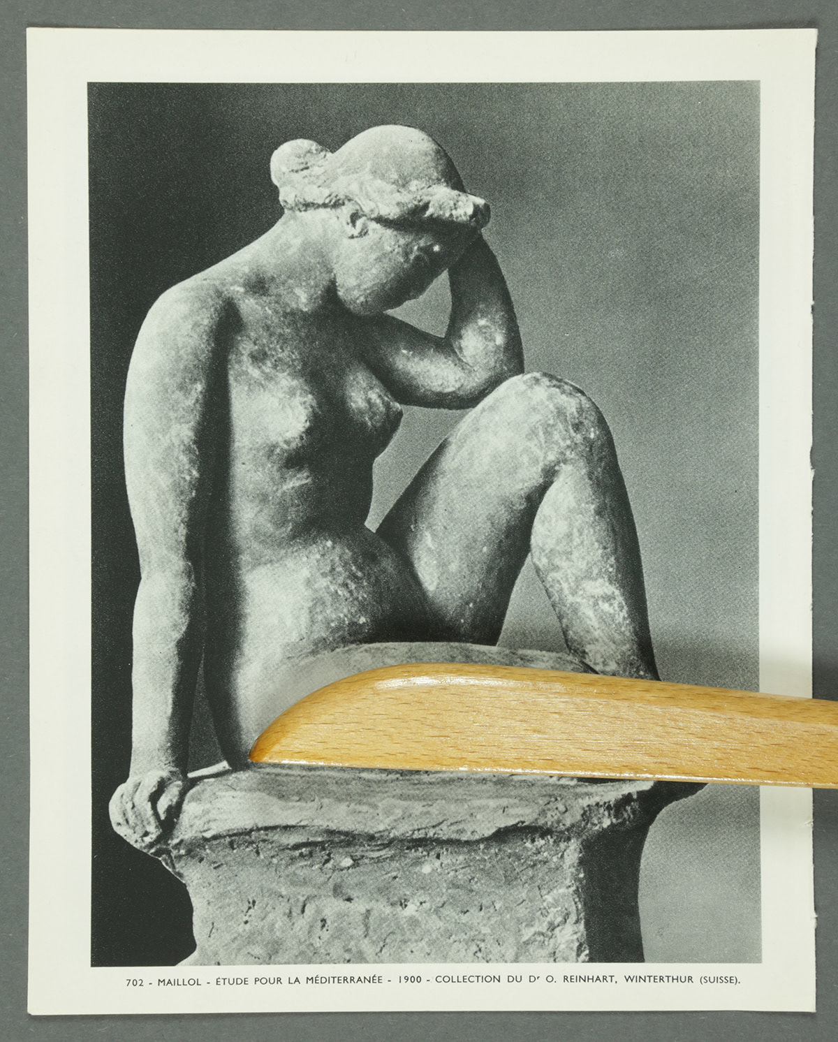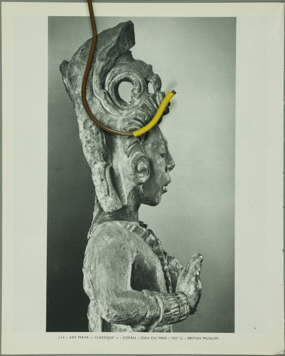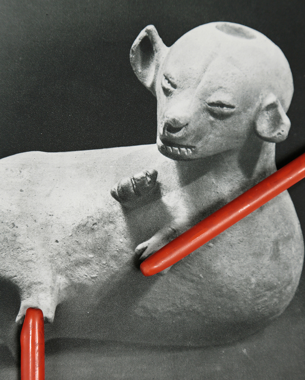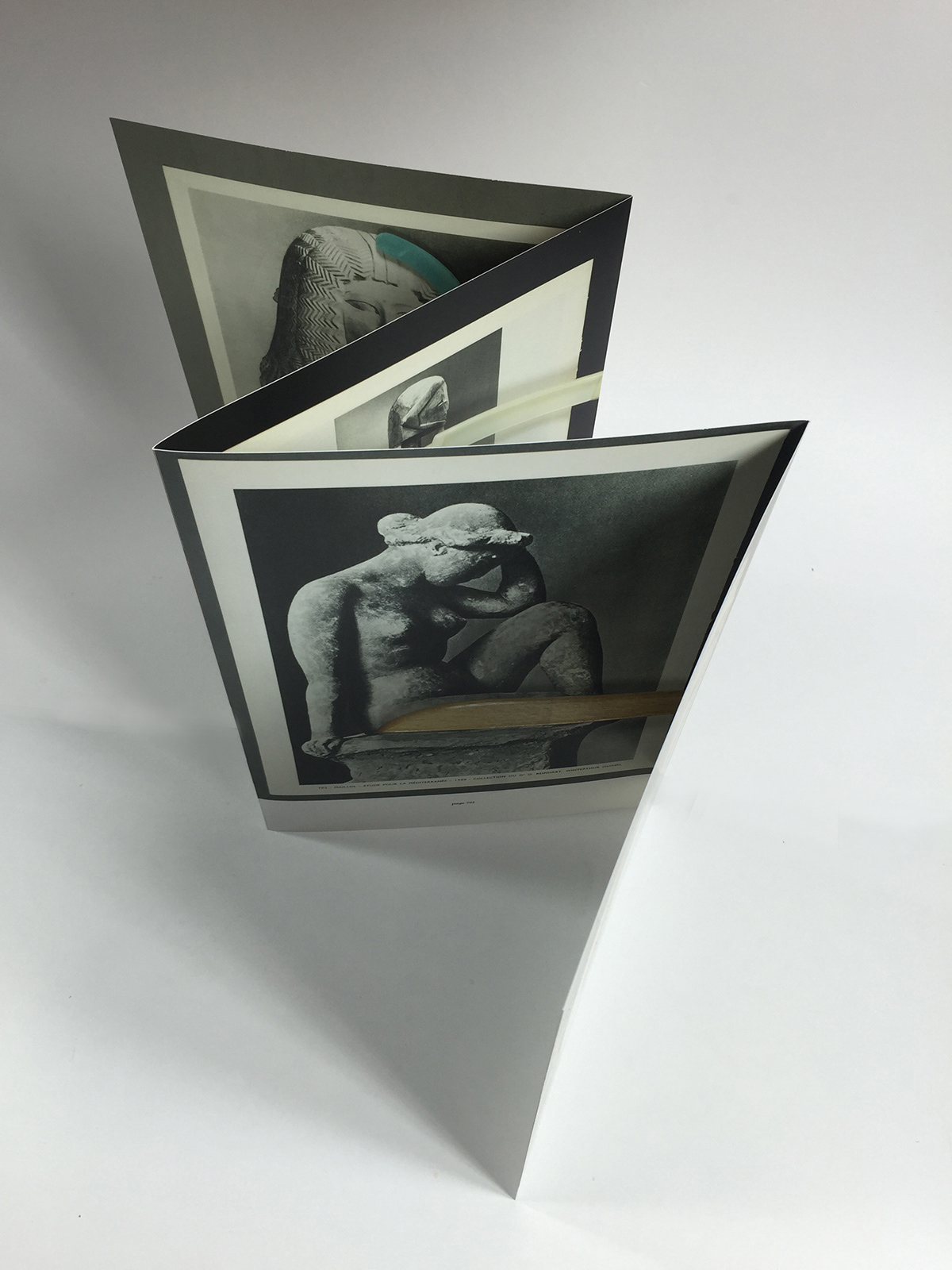In the photo series Attachments, cloth hangers from my private collection meet ripped pages from André Malraux's Le Musée Imaginaire de la Sculpture Mondiale (1952). This classic organizes universal resemblances across centuries through Western perspective. Here, black-and-white photographs of an imaginary museum encounter colorful domestic objects from my closets.