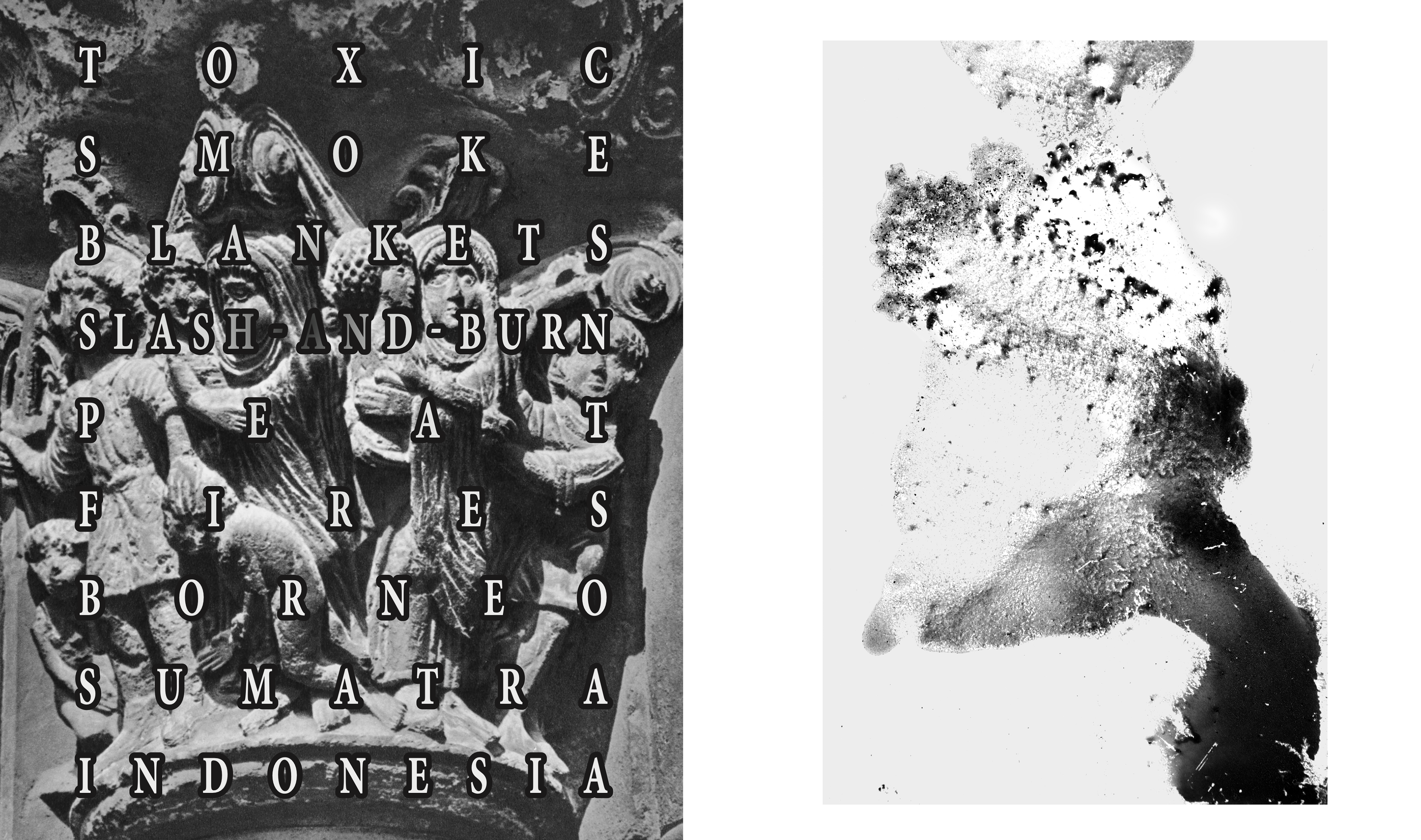 Each stain is named after a corresponding satellite image of disasters, climate change, or resource extraction, reversing fortune-telling by linking residues to what has already occurred.