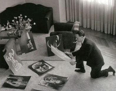 André Malraux selects photographs for Le Musée Imaginaire de la Sculpture Mondiale, 1947, © Getty Image