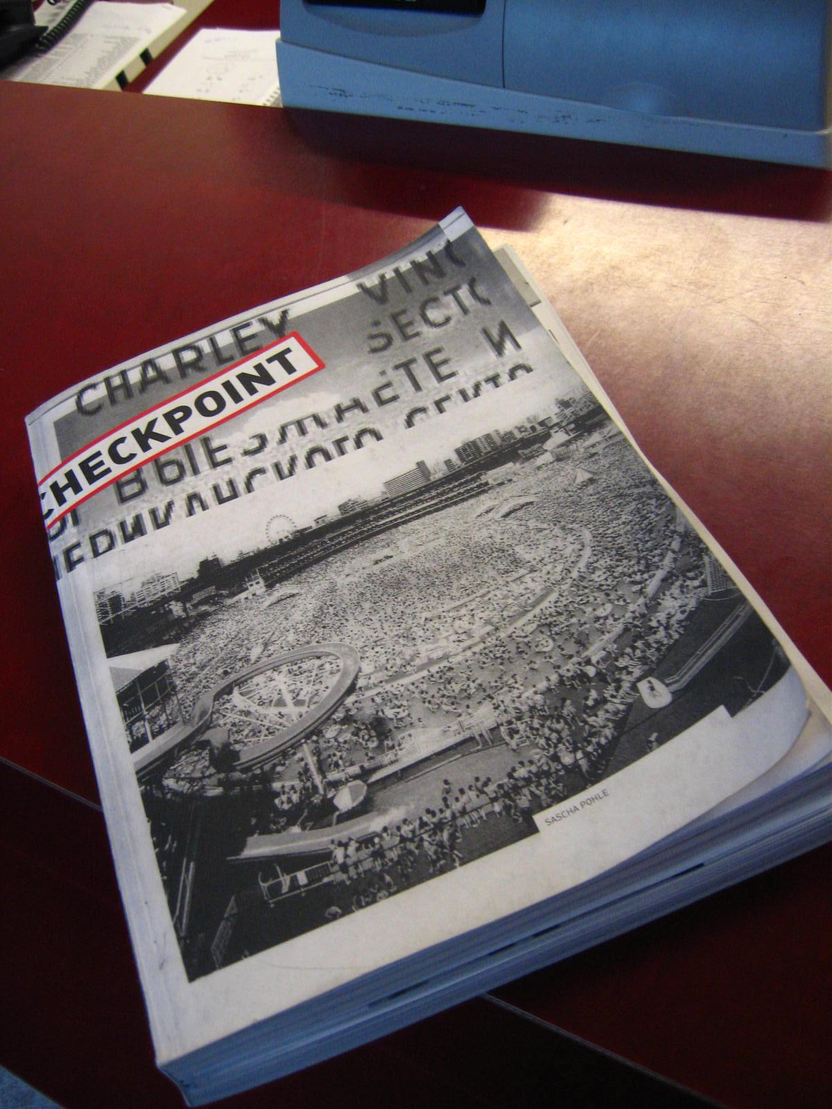 Charley 04 (Checkpoint Charley) is born out of the reasearch conducted by the curators of the 4th Berlin biennal for contemporary art (2006) and brought together images of works produced by more than 700 artists.