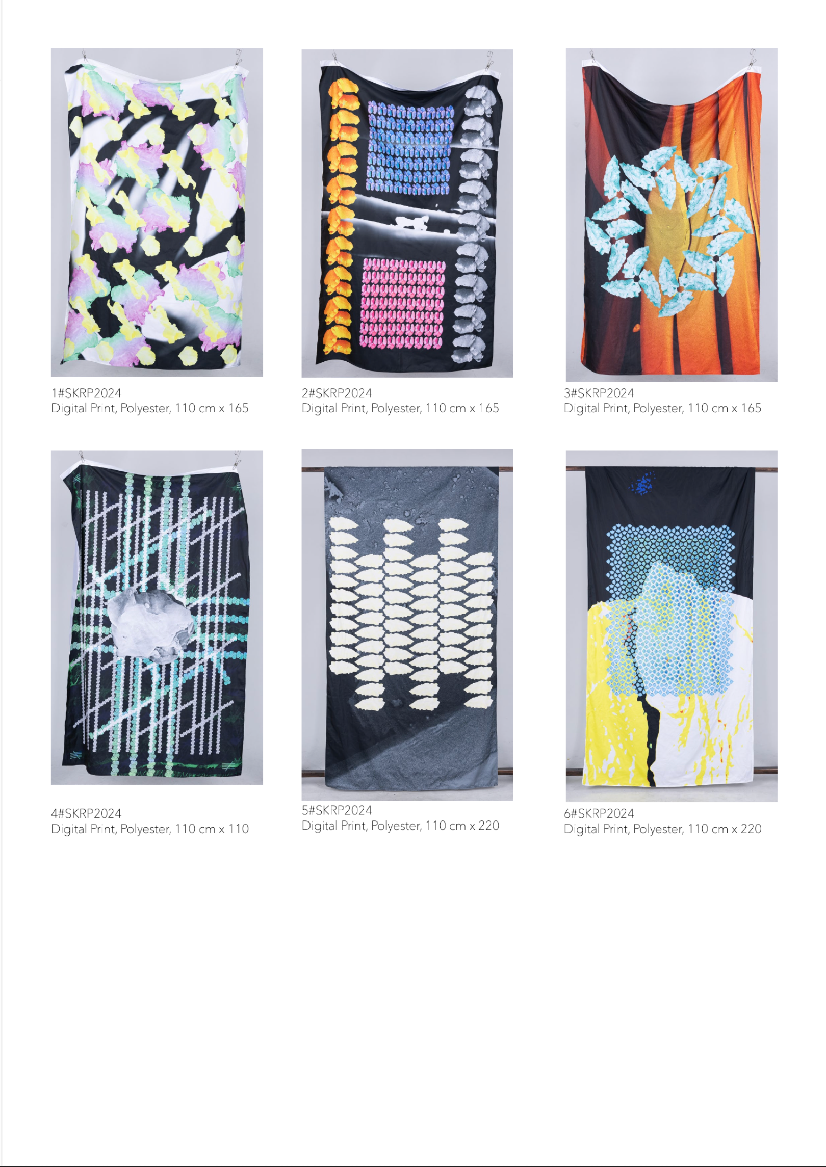 SKINS comprises prints of abstract patterns on fabric and weavings, designed from forensic SEM images of skin remains on TVXQ’s stage costumes. The work draws inspiration from the “Under my Skin” refrain in their 2008 song “Mirotic.”