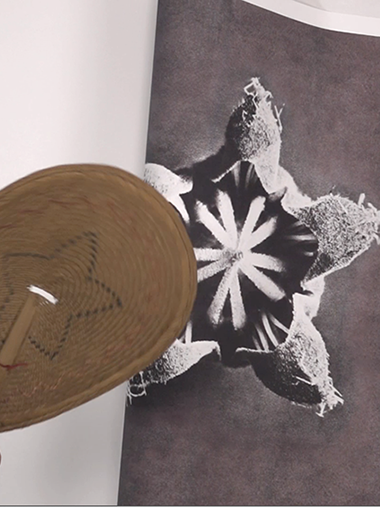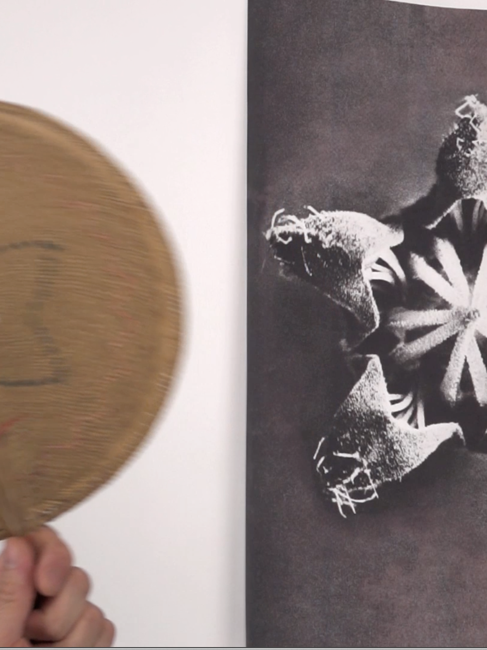 A slow‑motion video stages a mimetic play of form and pattern between Blossfeldt’s magnified plants and Chinese hand fans turning pages through air.